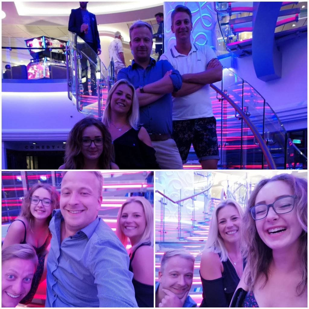 Danach starteten wir in das typische Leben eines Kreuzfahrers: Als erstes gab es die Pool Olympiade zu sehen, welche wir natürlich nur mit einem Cocktail genießen konnten. Gleich danach meldeten wir uns für „Deal or No Deal“ an. Bis zur Show gab es noch einen Cha Cha Kurs, der einiges für’s Auge zu bieten hatte. Während unten die Gäste alles gaben um den perfekten Hüftschwung zu erlernen, stärkten wir uns mit Prosecco und Burgern für „Deal or No Deal“.