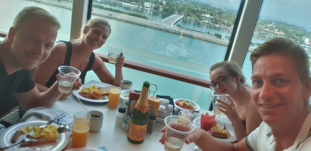 Nach einer sehr kurzen Nacht klingelte bereits um 5:30 der Wecker, da wir bereits um 08:00 das Schiff verlassen mussten. Selbstverständlich hatten wir noch nicht alles gepackt, dennoch trafen wir uns zunächst mit Sabine und Thomas zum Sektfrühstück 😉 okay der ursprüngliche Plan war, gemeinsam zu sehen wie wir in den Hafen einlaufen, aber das haben wir leider verpasst.