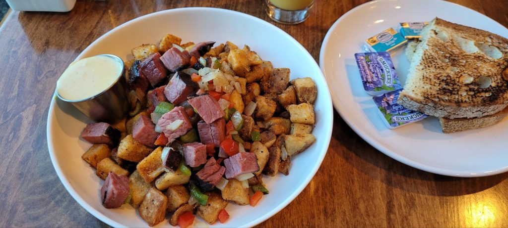 Mit den $80 Verzehrgutscheinen von der Fluggesellschaft konnten wir uns dann auch gerade noch ein deftiges Frühstück (76 $) leisten, bevor es schnell wieder zurück ins Zimmer ging, wo wir in perfekt abgestimmter Teamarbeit schnell alles zusammenpackten.