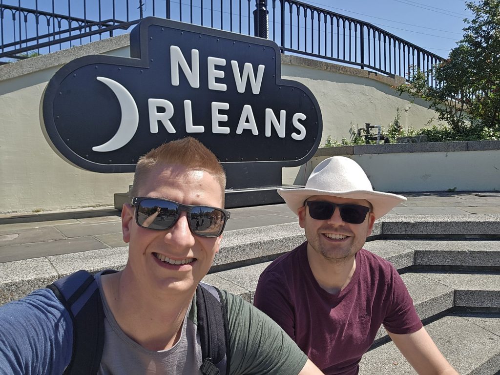 Nach einem unspektakulären Flug landeten wir gegen Mittag endlich in der Geburtsstadt des Jazz, New Orleans, oder wie die Einheimischen sagen „N’orleans“. Als wir aus dem Flughafen heraustraten empfing uns direkt ein hervorragendes Wetterchen mit Sonne und einer wirklich angenehmen milden Brise. Das Grinsen auf Max‘ Gesicht hätte nicht größer sein können.
