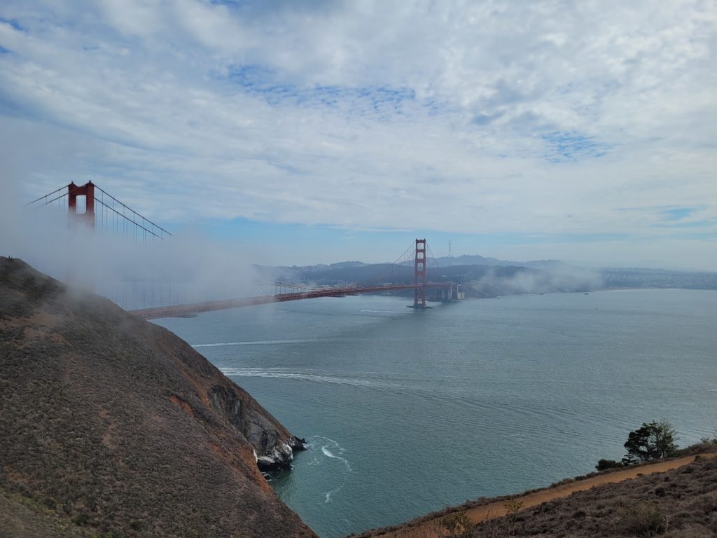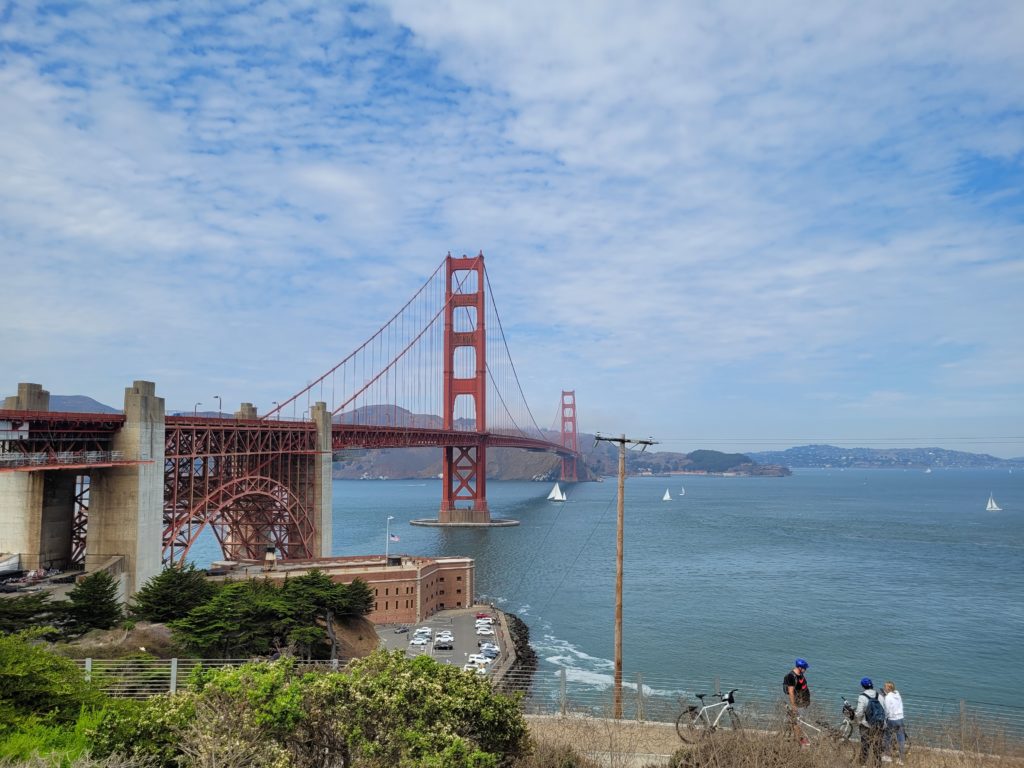 Die Golden Gate Bridge wurde 1937 eröffnet und war zu diesem Zeitpunkt die längste Hängebrücke der Welt. Ihre Pylone ragen 227 m aus der 90 m tiefen Meeresbucht hinaus. Wir konnten es uns natürlich auch nicht nehmen lassen die 2,7 km über die Brücke zu spazieren. Dass die Brücke dabei bis zu fast 10 m schwanken kann, war jedenfalls deutlich zu spüren.