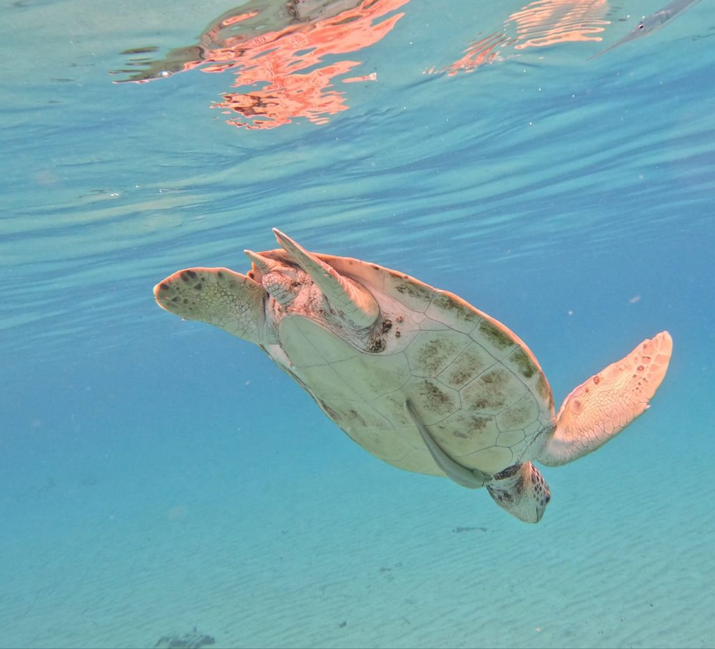 Neben den Schildkröten, die übrigens alle einen Namen haben, konnten wir auch wieder viele andere Fische, Meereslebewesen und Vögel beobachten. Bei dem kristallklaren blauen Wasser ist das ganze einfach ein Traum.