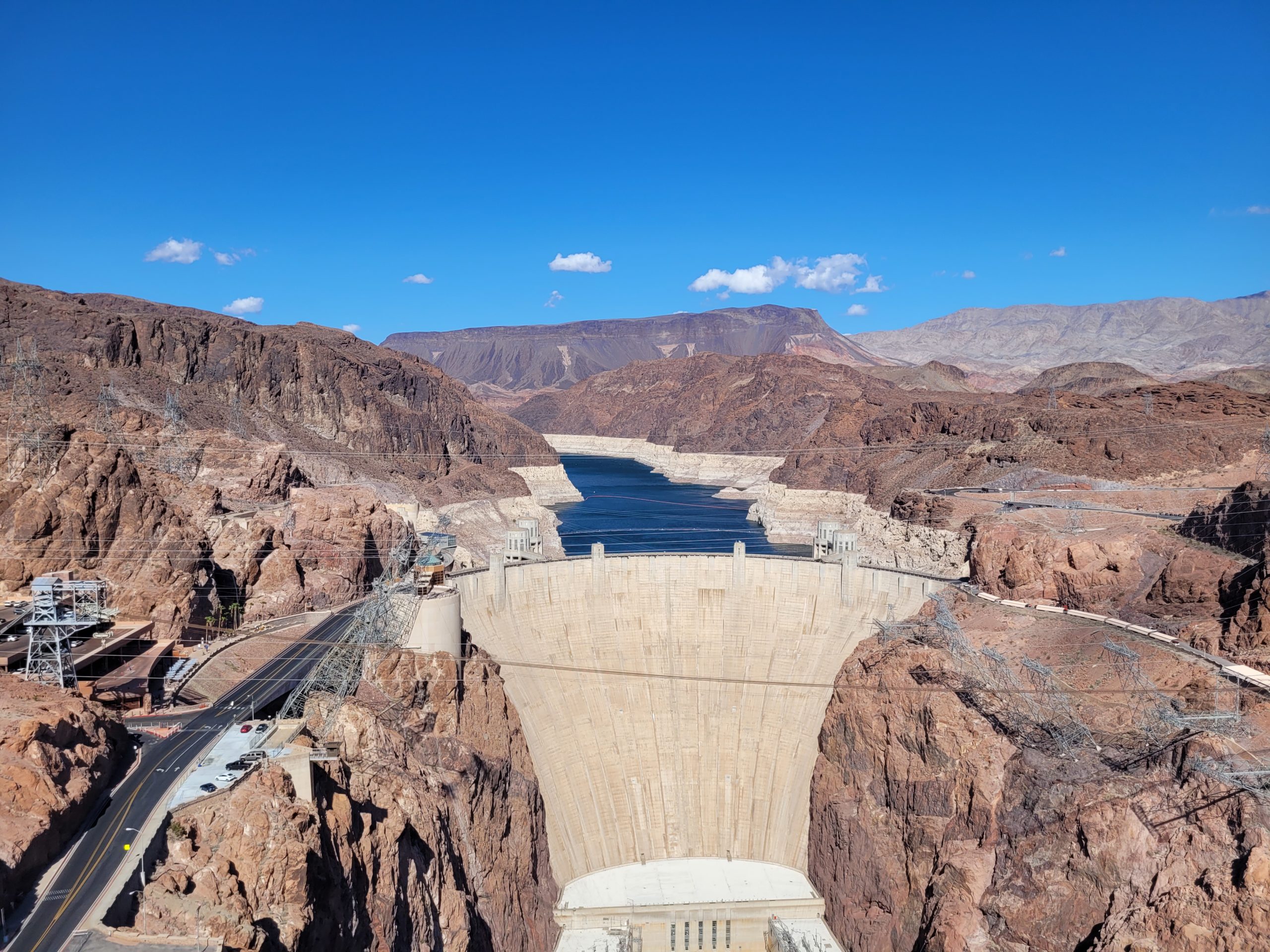 Erster offizieller Zwischenstopp war der Hoover Dam im Black Canyon. Dieser 1935 fertiggestellte Staudamm staut das Wasser aus dem Colorado River zum Lake Mead auf.