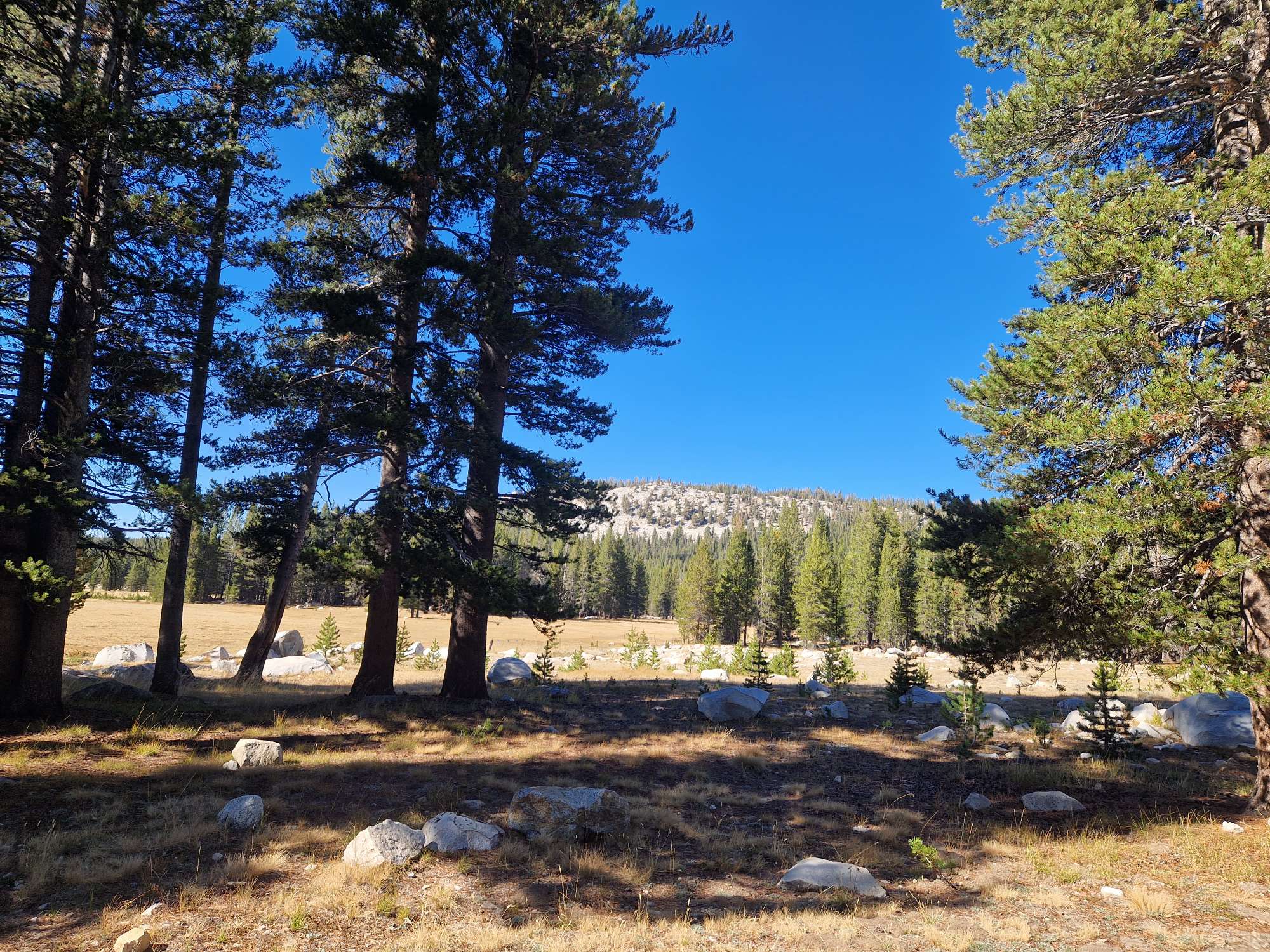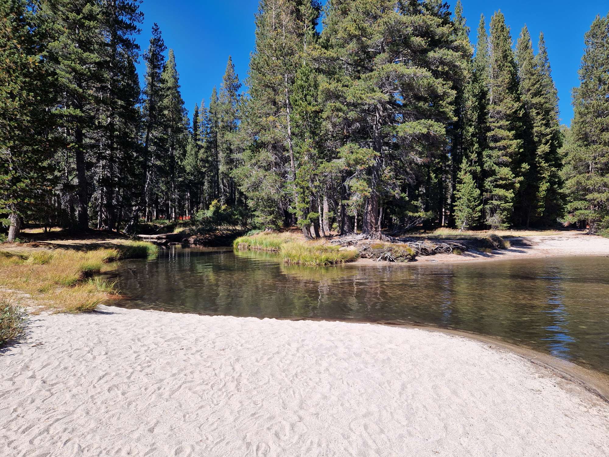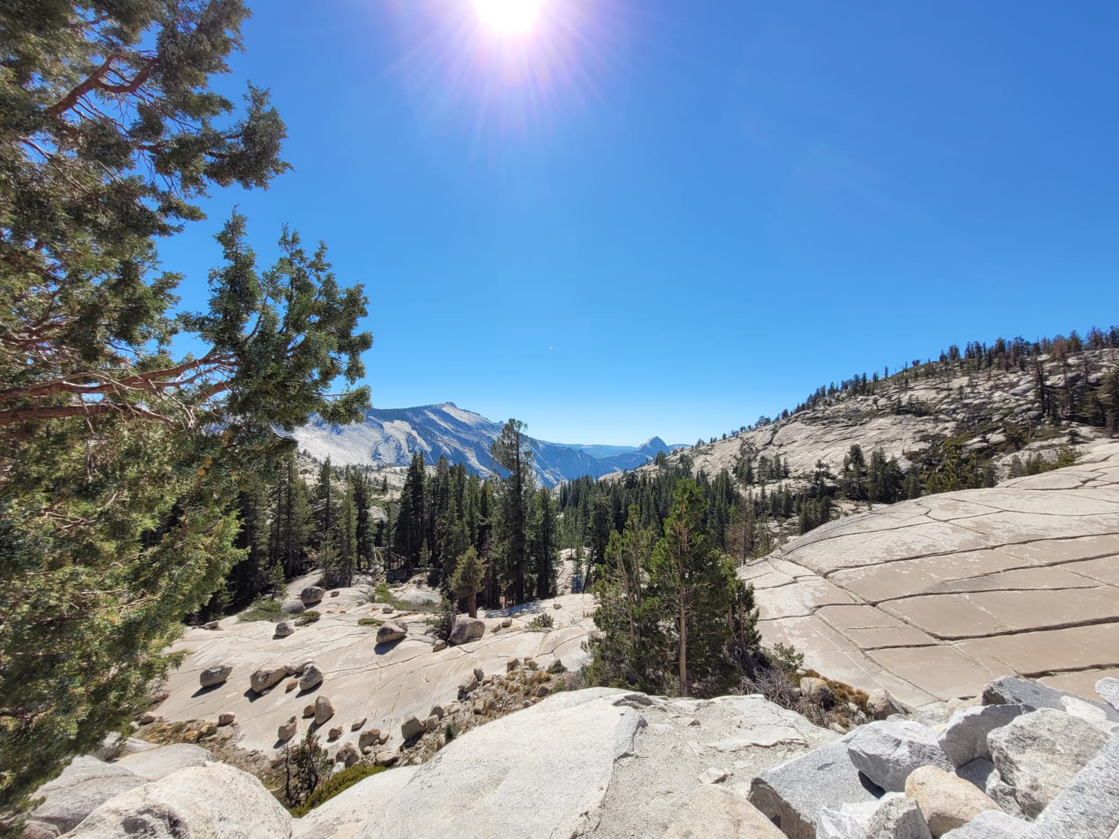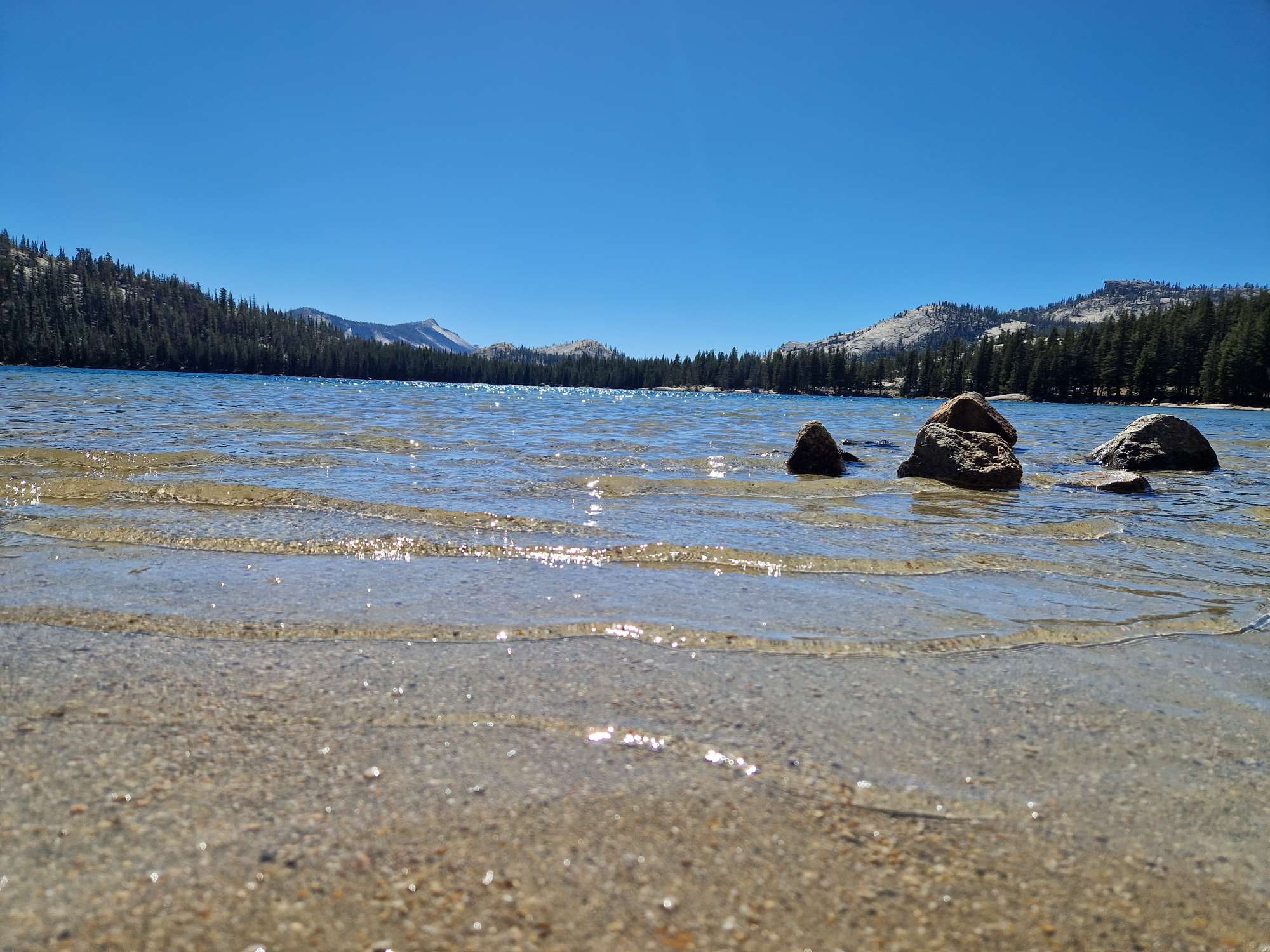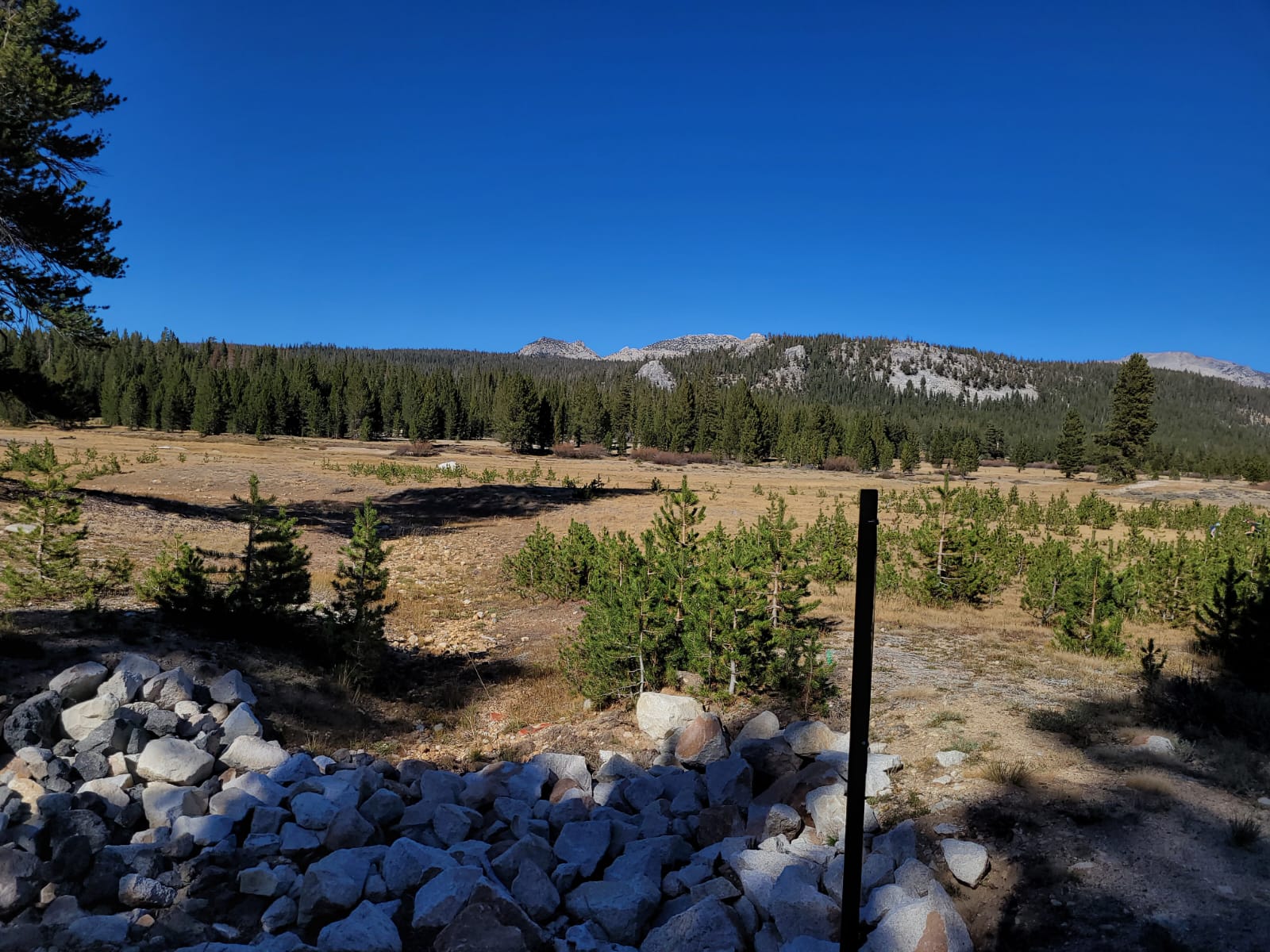 An den Tuolumne Meadows angekommen, mussten wir feststellen, dass hier aktuell sehr viele Straßenbauarbeiten stattfinden. Anstatt das Material dafür recht kompakt und platzsparend zu lagern, ist es hier wohl eher Usus die Baustoffe, Werk- und Fahrzeuge quer verteilt über sämtliche Parkplätze zu deponieren. So war es ziemlich schwer, einen geeigneten Stellplatz für Mogli zu finden. Wir beschränkten uns deshalb auf eine kleine Wanderung durch die Meadows, bei der wir auch eine der heimischen Kröten trafen.