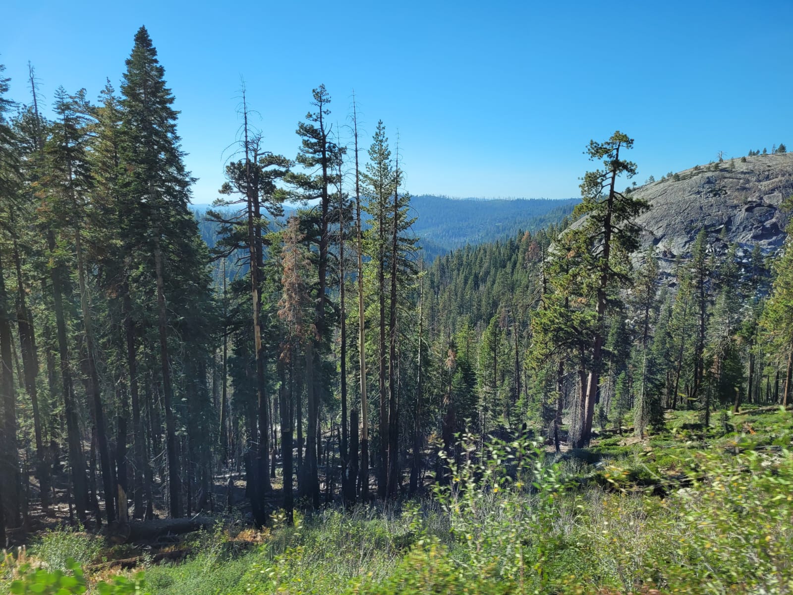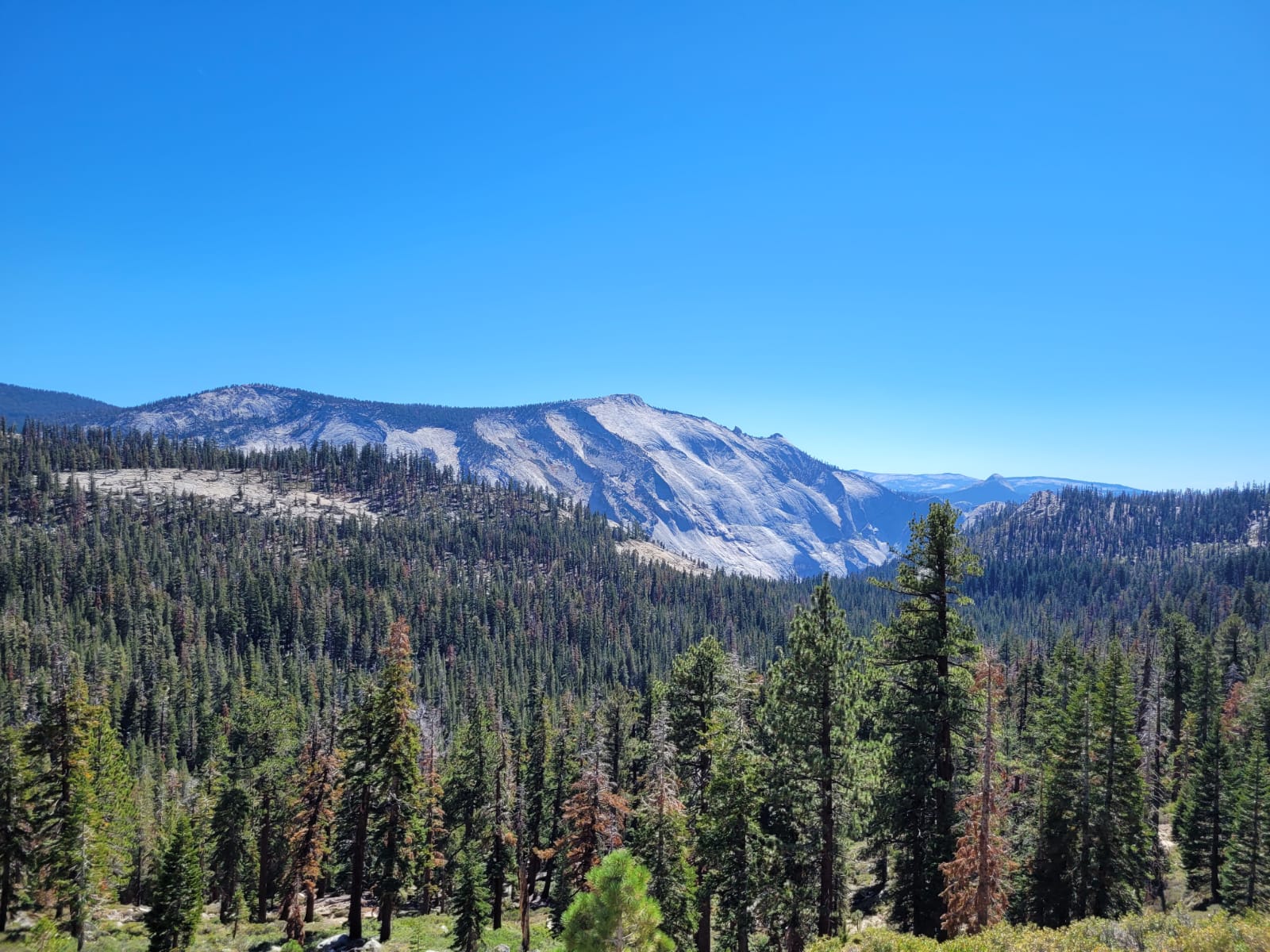 Von diesem Aussichtspunkt aus ergab sich ein guter Blick über die für Yosemite typische Felsenlandschaft, gespickt mit saftig grünen Nadelbäumen.