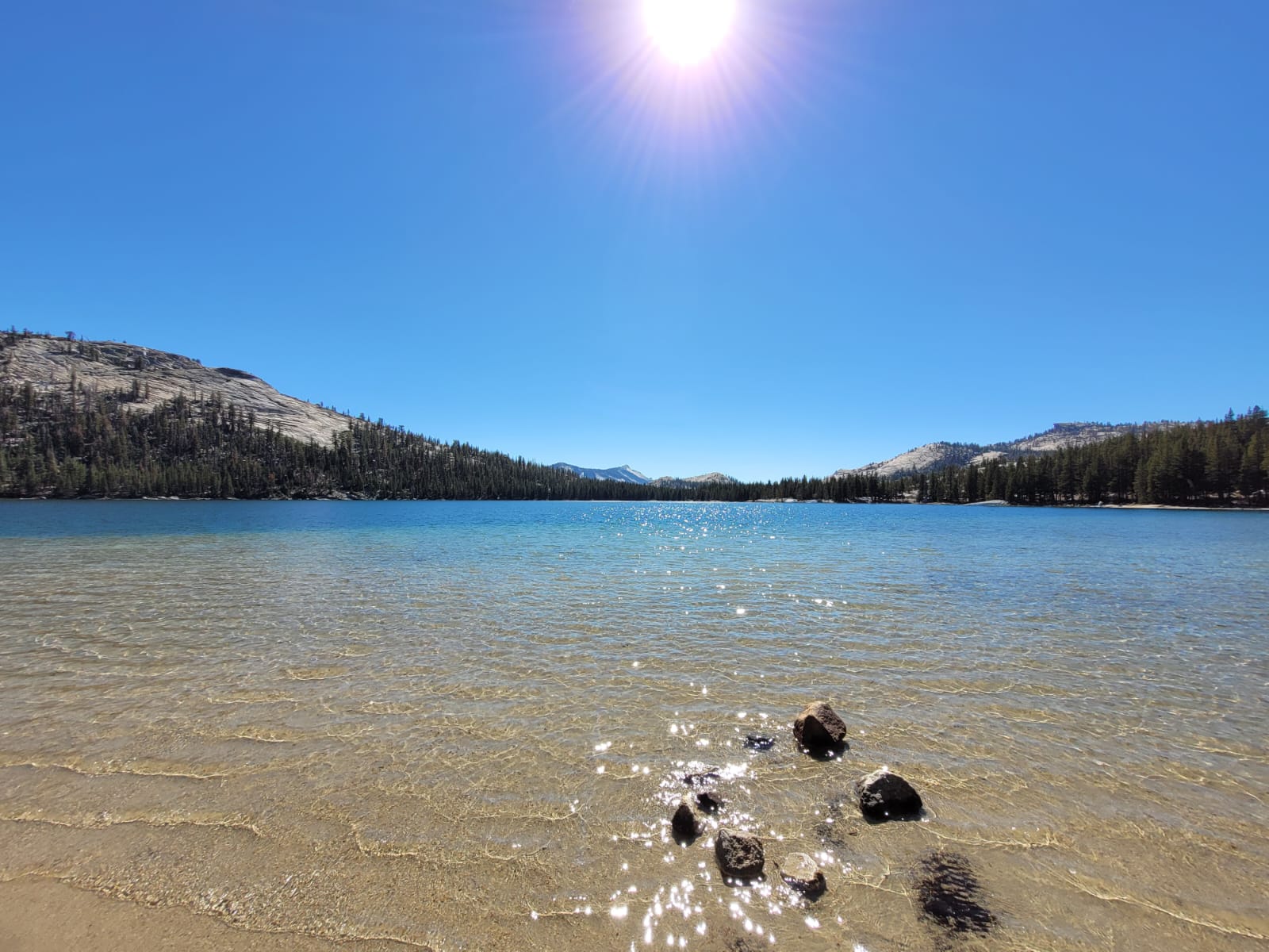 Nachdem wir eine weitere Nacht in der Kälte verbracht hatten, ging es heute zunächst zu den Tuolumne Meadows, welche im Yosemite National Park gelegen sind. Dabei handelt es sich um große Grasflächen und Seen, umgeben von ziemlich eindrucksvollen Felsformationen.