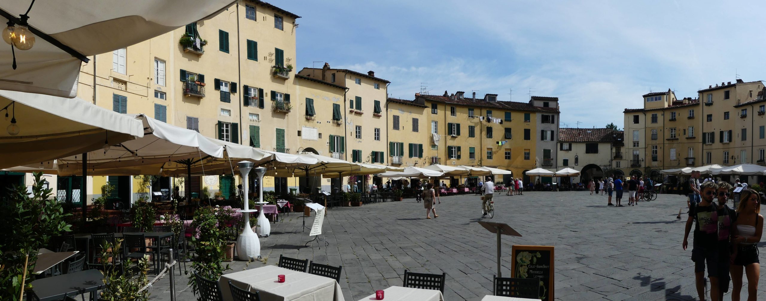 Nächstes Ziel war die kleine Stadt Lucca, im Norden von Pisa. Als Erstes ging es unter der Stadtmauer daher und dann in die kleinen, dicht gesäumten Gassen der Stadt.