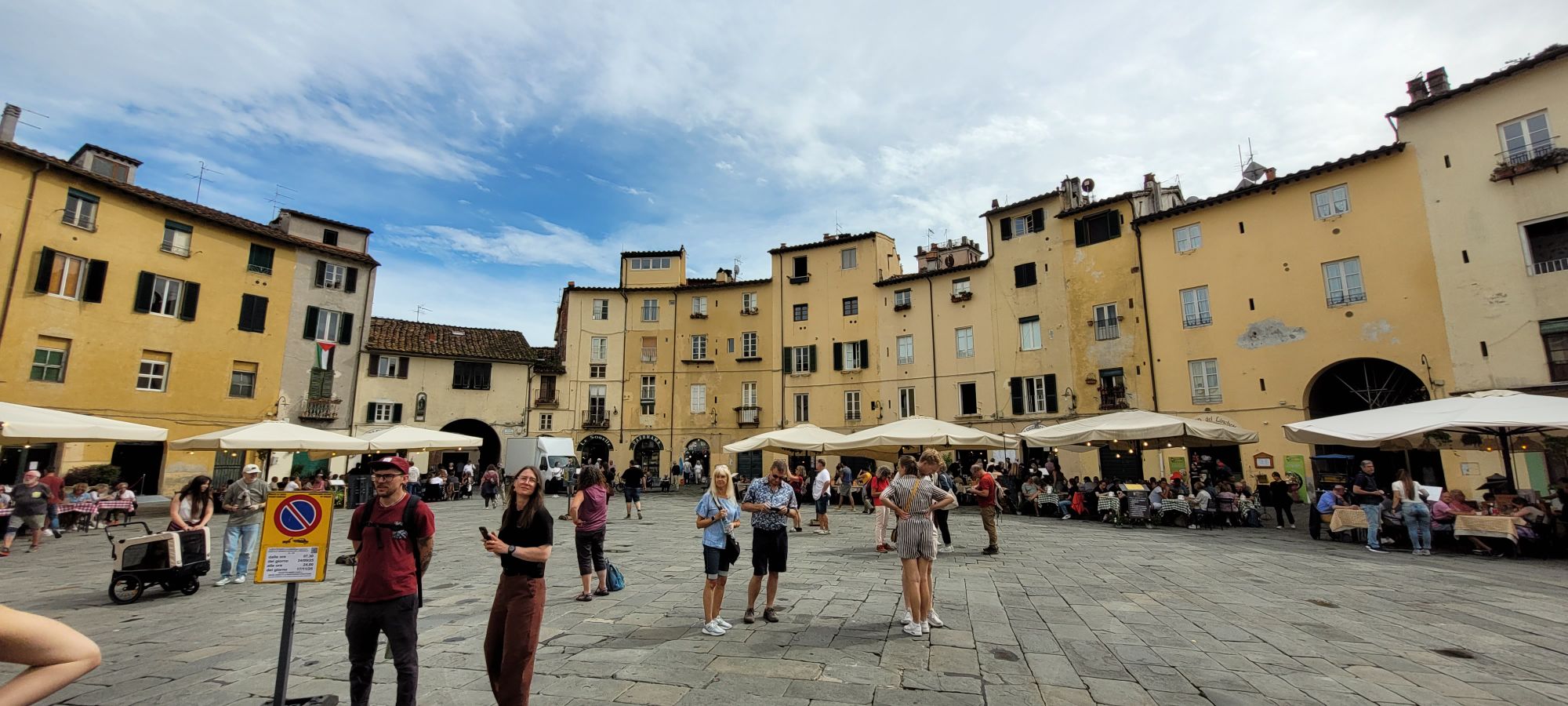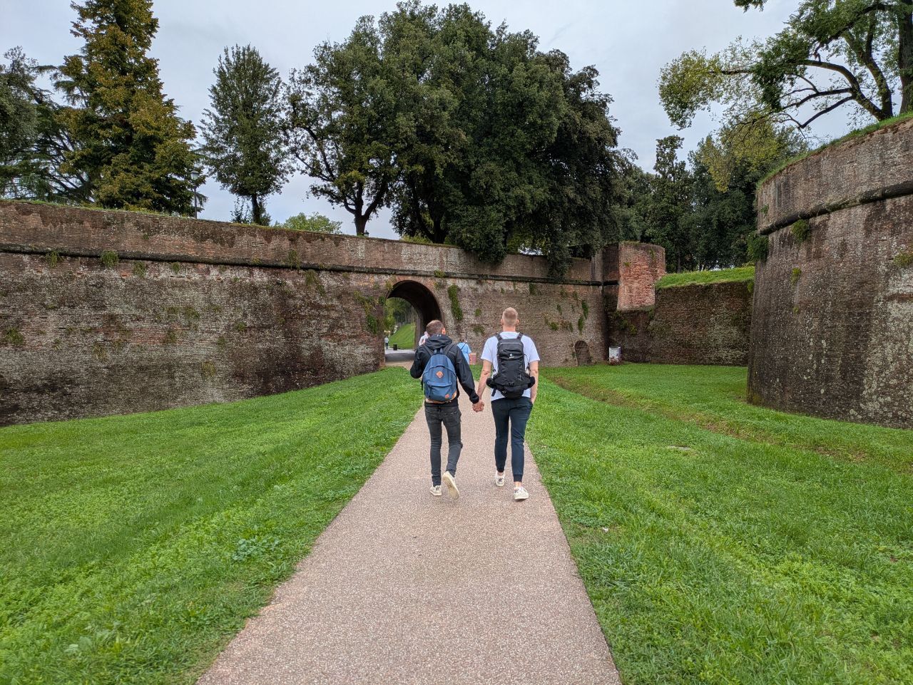 Die Stadt empfängt uns mit ihren mittelalterlichen Mauern und einem Mix aus Kopfsteinpflasterromantik und italienischem Verkehrschaos. Wir schlendern durch kleine Gassen, schauen uns Kirchen an, und irgendwann ist klar: Lucca ist so hübsch, dass selbst der Regen sich schämt und langsam verschwindet.