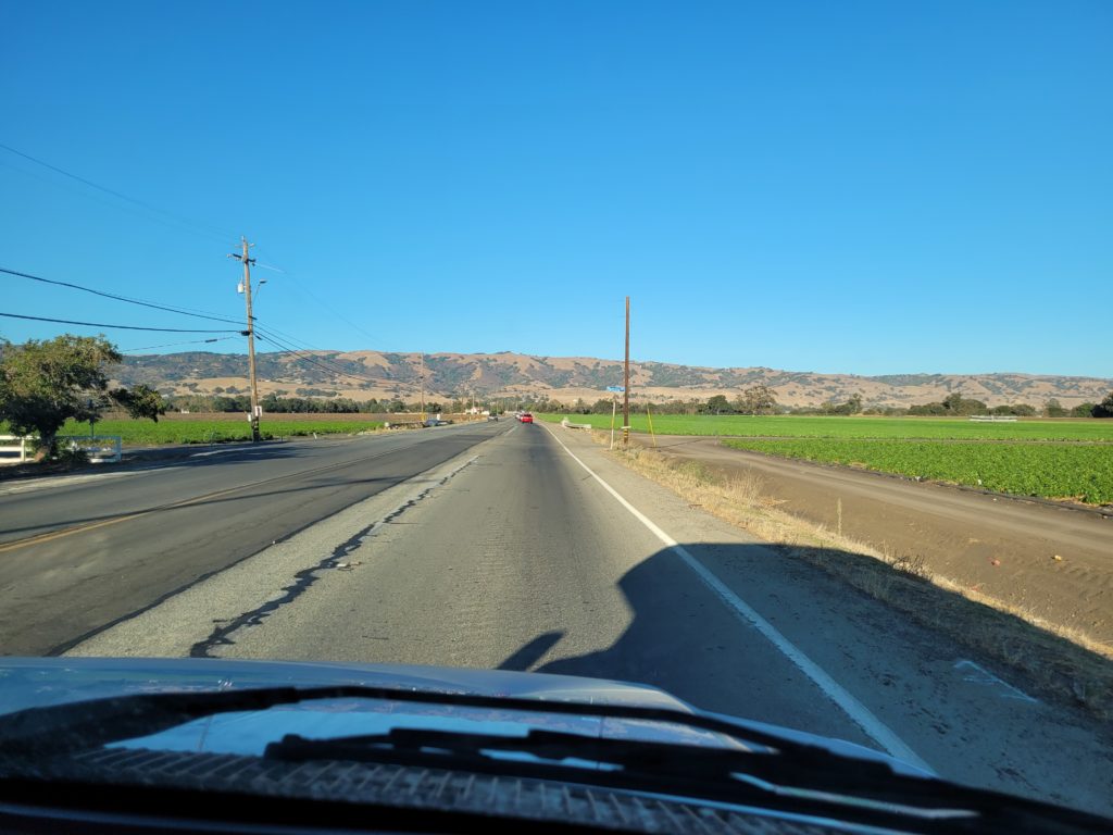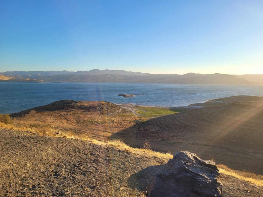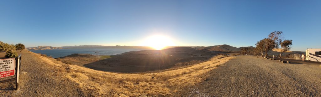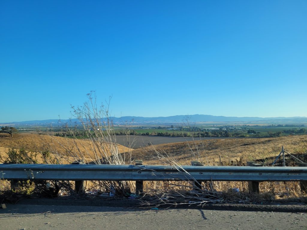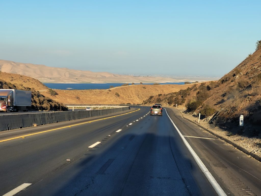 Am San Luis Reservoir machten wir einen kleinen Zwischenstopp, denn die Aussicht war überwältigend. Erschreckend war allerdings zu sehen, wie hoch das Wasser hier eigentlich sein müsste! Außerdem wehte der Wind ganz schön kräftig um den RV. Auch wenn wir es sicherlich gemütlich und spannend gefunden hätten, hier länger zu verweilen, machten wir uns alsbald wieder auf den Weg, denn vor uns lag noch eine ganz schön große Strecke.