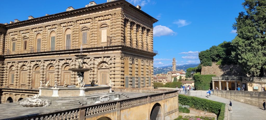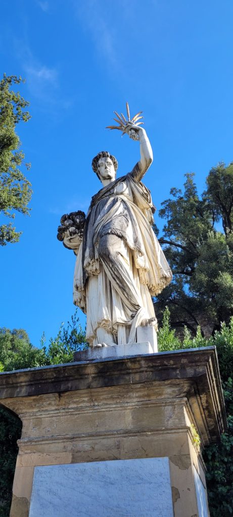 Nach einem kleinen Panini-Stop in unserer „Stamm-Paninothek“, beschlossen wir zu den Giardino Boboli zu gehen. In diesen von der bekannten florentinischen Familie der Medici angelegten Gartenanlagen sind ebenfalls schöne Skulpturen und Grotten zu besichtigen. Besonders beeindruckend war ein ägyptischer Obelisk aus dem 13. Jahrhundert vor Christus. Die zahlreichen steilen Anstiege der Anlage wurden mit einer traumhaften Aussicht auf die florentinische Umgebung entlohnt.