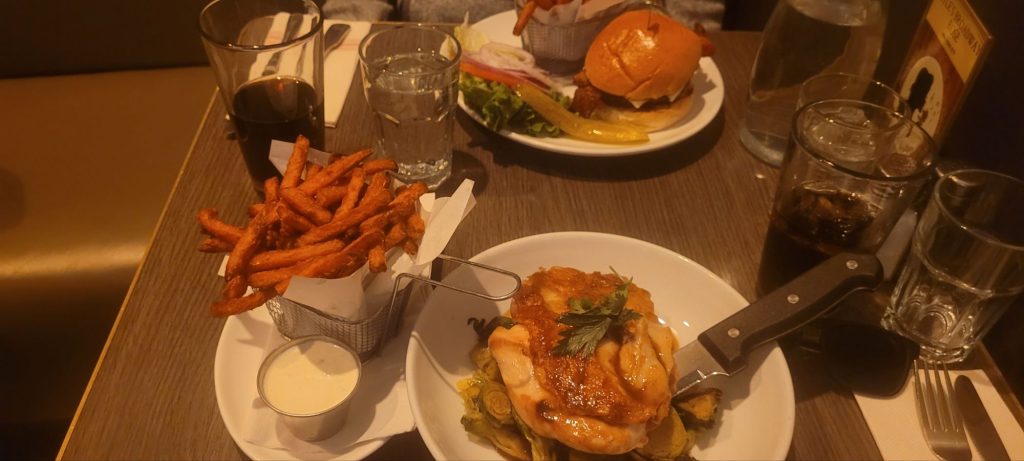 Da wir die ursprüngliche Reservierung für Gayles Broadway Rose schon vor der spontanen Verabredung mit Gideon und Anastasia gemacht hatten, ließen wir uns heute erneut mit live gesungenen Broadway-Klassikern beschallen, während wir unser Abendessen genossen. Wir scheinen auch Wiedererkennungswert zu haben, denn unsere singende Kellnerin war erfreut uns wieder begrüßen zu dürfen.