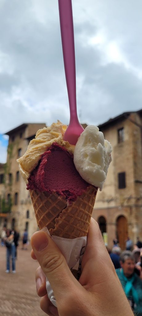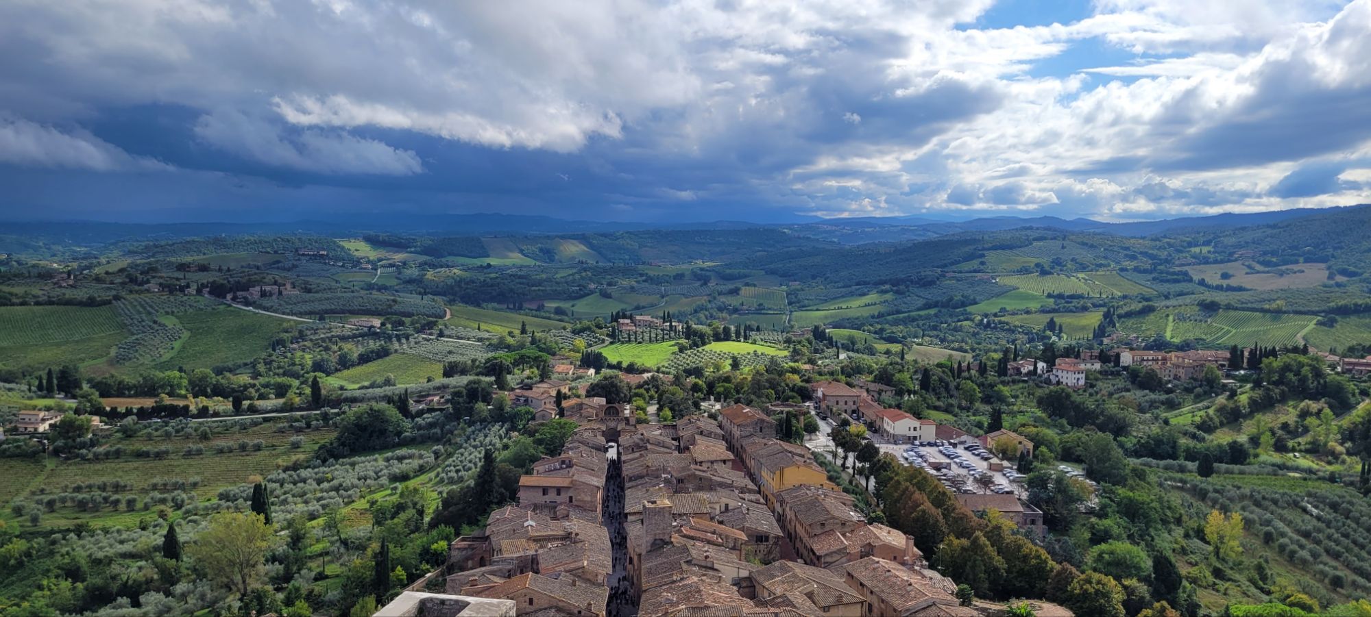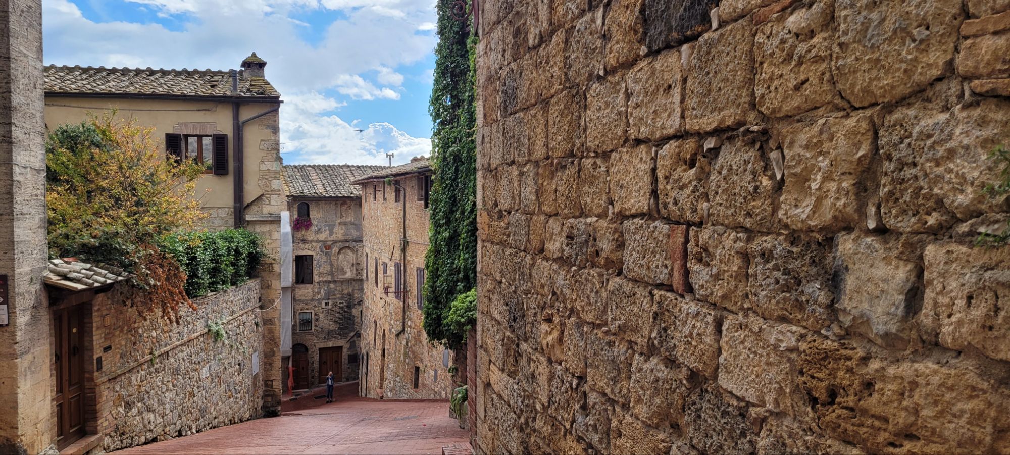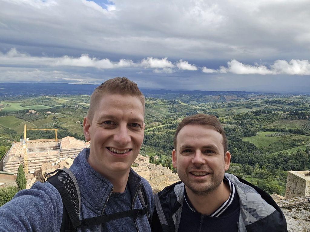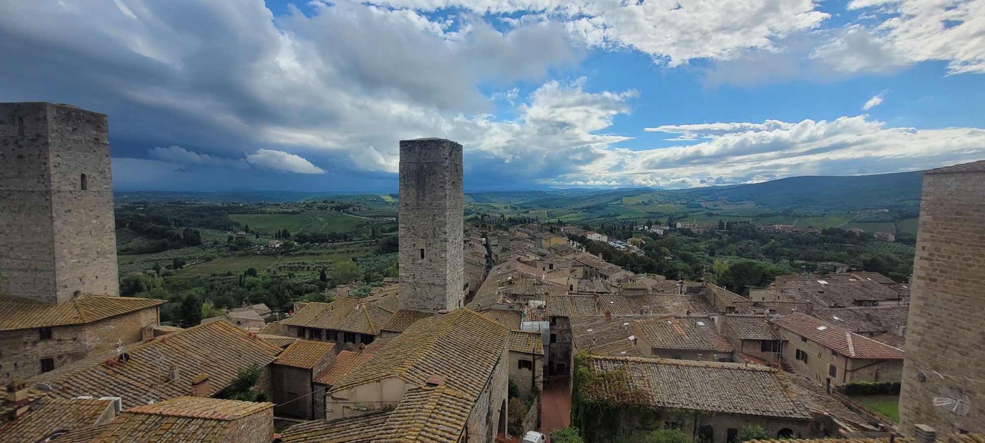 Weiter ging’s nach San Gimignano, wo wir uns den Torre Grossa vorgenommen haben. Der Turm ist mit stolzen 54 Metern der höchste der Stadt – und wurde schon 1311 fertiggestellt. Damals durfte kein anderer Turm höher gebaut werden, quasi ein mittelalterlicher „Skyline-Monopolvertrag“. Wer ihn erklimmt, steigt also nicht nur durch enge Durchstiege (bei denen selbst Hobbits den Kopf einziehen müssten), sondern wandert buchstäblich durch 700 Jahre Geschichte. Und was die vielen Türme betrifft: die entstanden damals vor allem aus Konkurrenzgehabe der reichen Familien. Jeder wollte zeigen, wer mehr Geld, Macht und Dickköpfigkeit hat – so wurde die Stadt irgendwann zur „mittelalterlichen Manhattan-Version“, nur eben mit deutlich mehr Eseln und weniger Yellow Taxis.