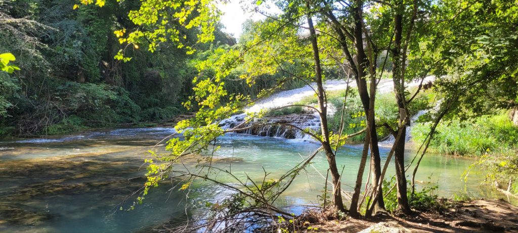Nach einem ausgiebigen Frühstück ging’s zur Cascata del Diborrato in Colle Di Val D’Elsa. Während andere dort Fotos für Instagram schossen oder sich ins kalte Nass stürzten, haben wir das einzig Vernünftige gemacht: die Gegend erkundet und einen Espresso gekocht. Direkt am türkisblauen Wasser, Kaffeeduft in der Luft – plötzlich wirkte unser kleiner Campingkocher wie ein Michelin-Sterne-Barista.